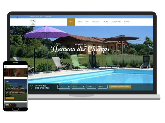 Création du site internet des gites "Le Hameau des Champs". Installation d'un CMS et mise en place d'un module de réservation en ligne.