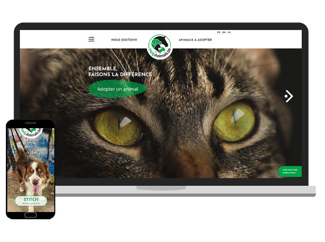 Création du site internet de l'association Help Animals. Installation d'un CMS et connexion au logiciel de gestion des animaux à adopter. En collaboration avec JNJ.